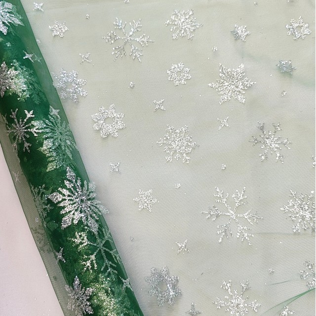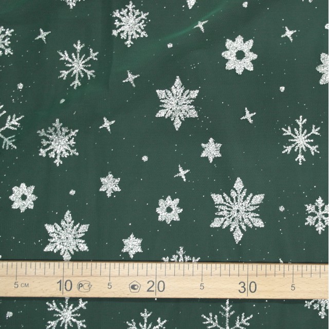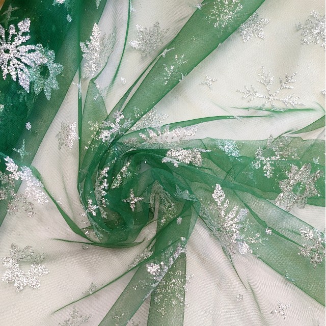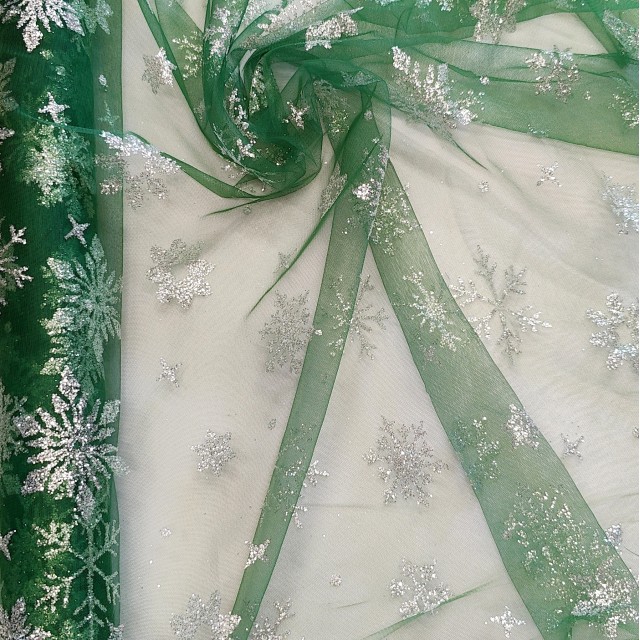 - Мягкий фатин с снежинки из глиттера для пошива нарядных новогодних платьев