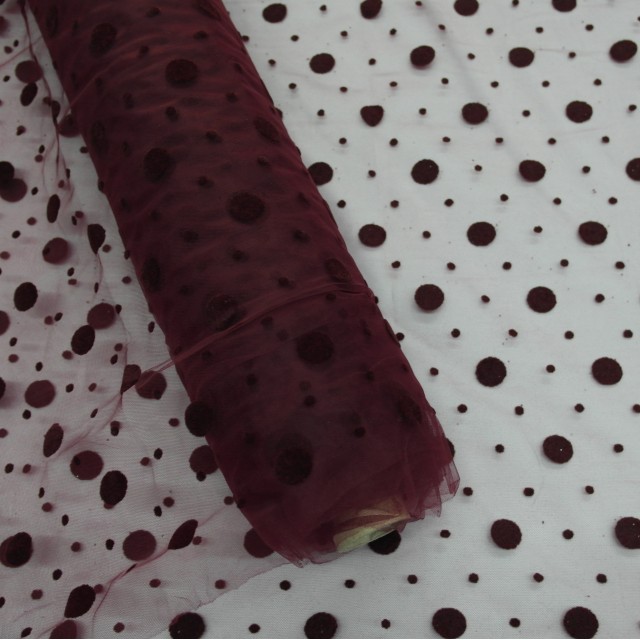 - Бордовый фатин с горошками