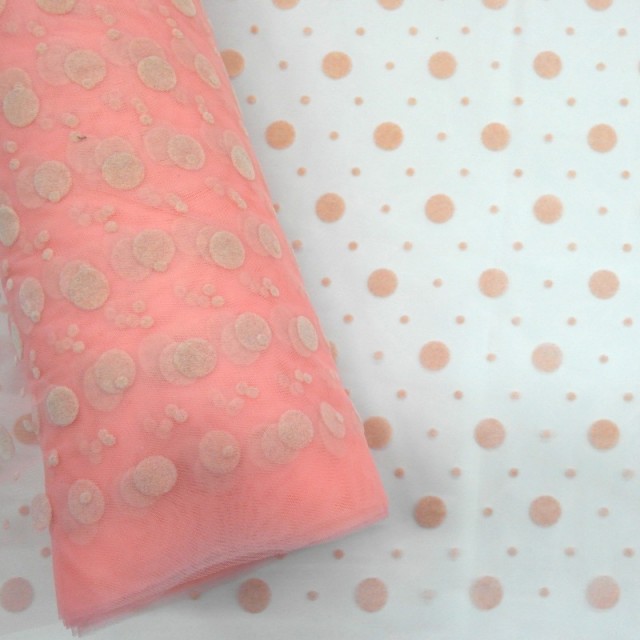 - Мягкий фатин с горошками красивого нежно кораллового цвета