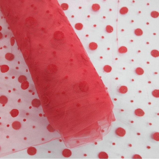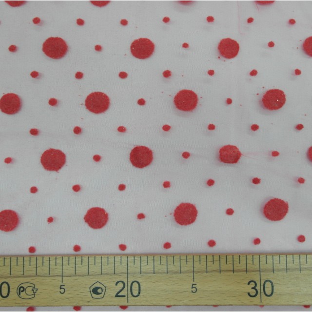 - Мягкий фатин с горошками пастельно красного цвета для красивых нарядных платьев