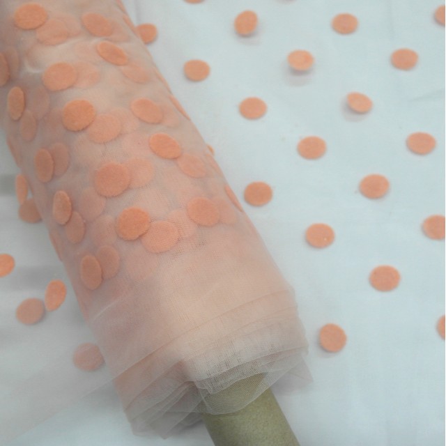- Мягкий фатин в горошек пудрово персикового цвета для пошива красивых юбочек