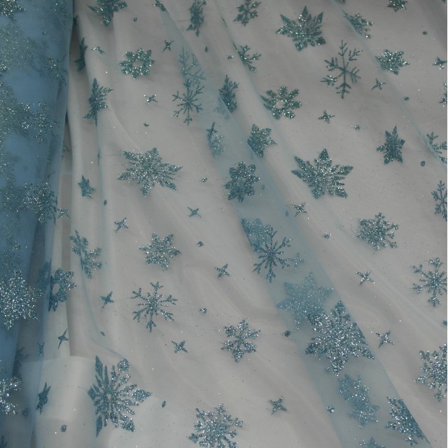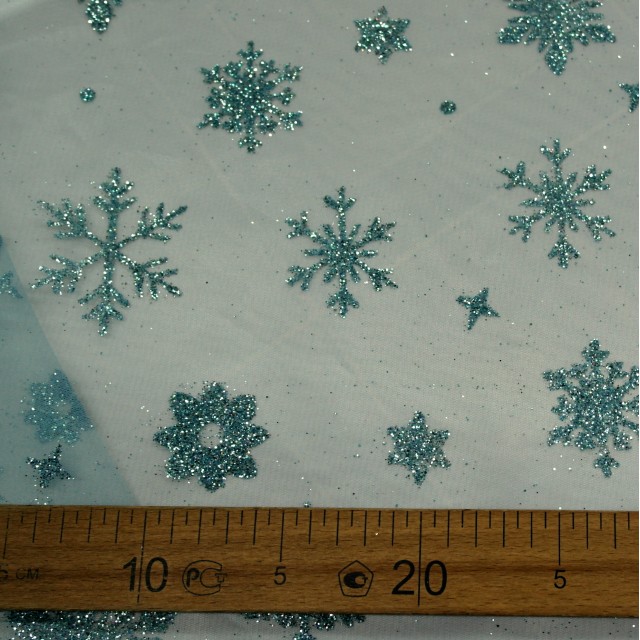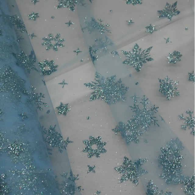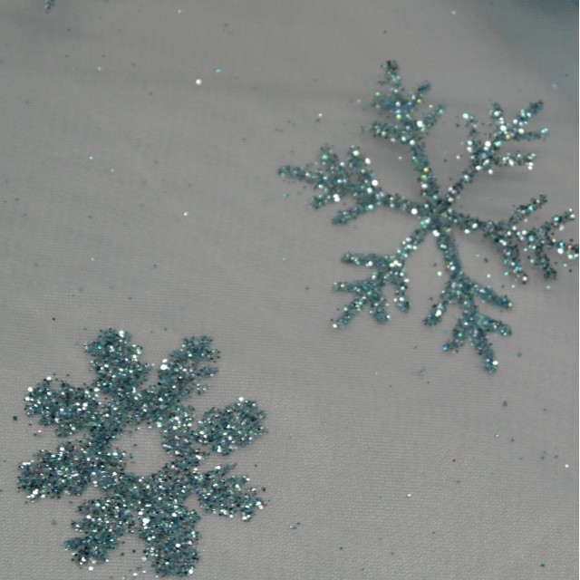 - Фатин снежинки это - мягкий еврофатин с нанесенными узором - снежинки из глиттера серебряного и голубого цвета