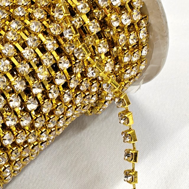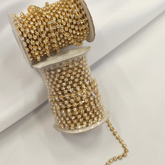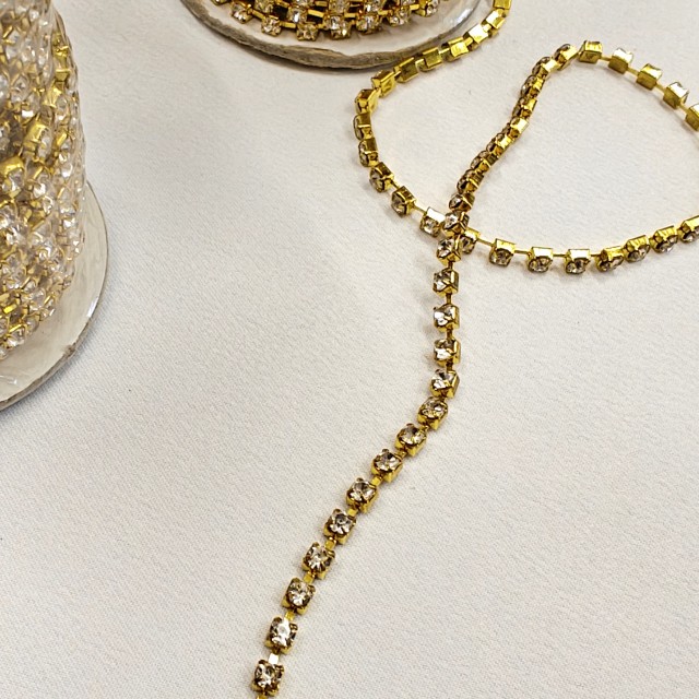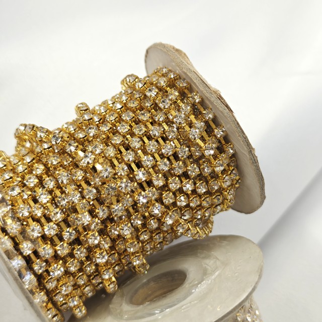 - Стразы выполнены в металлической оправе выполнены одной нитью
