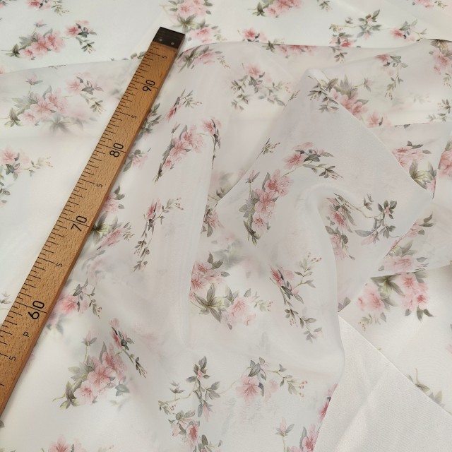 - Органза матовая Виола с принтом розочки