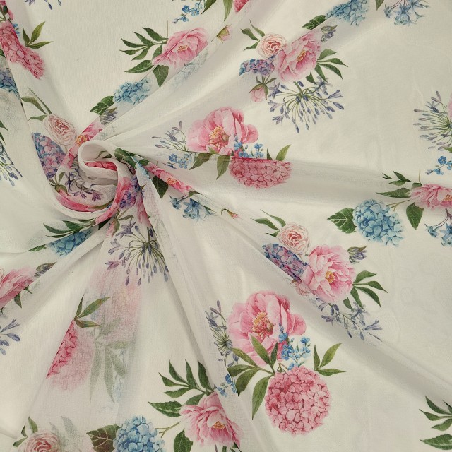 - Органза матовая Виола с принтом розово голубая гортензия