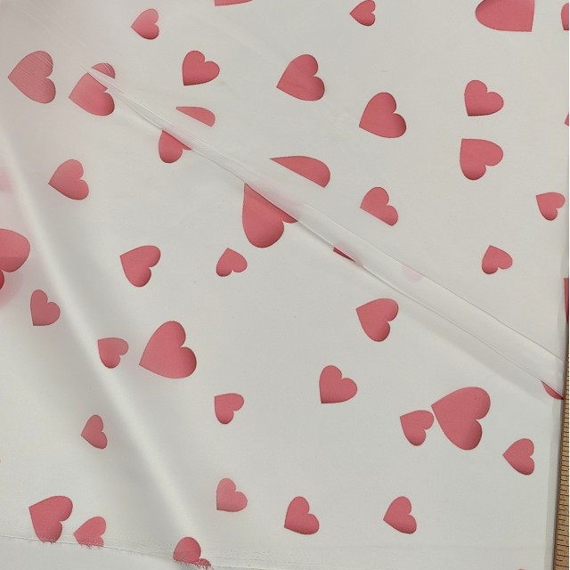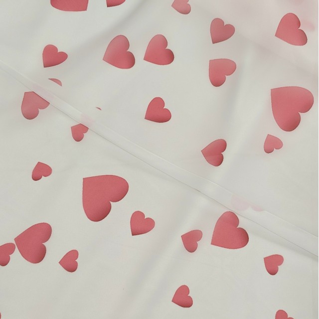 - Органза матовая Виола с принтом розовые сердечки для шитья нарядных платьев