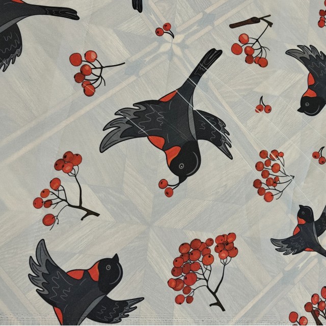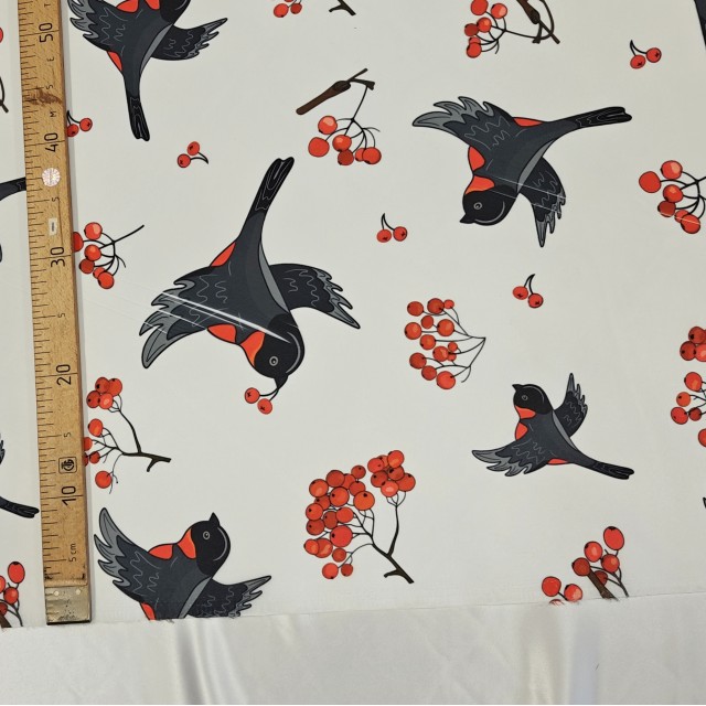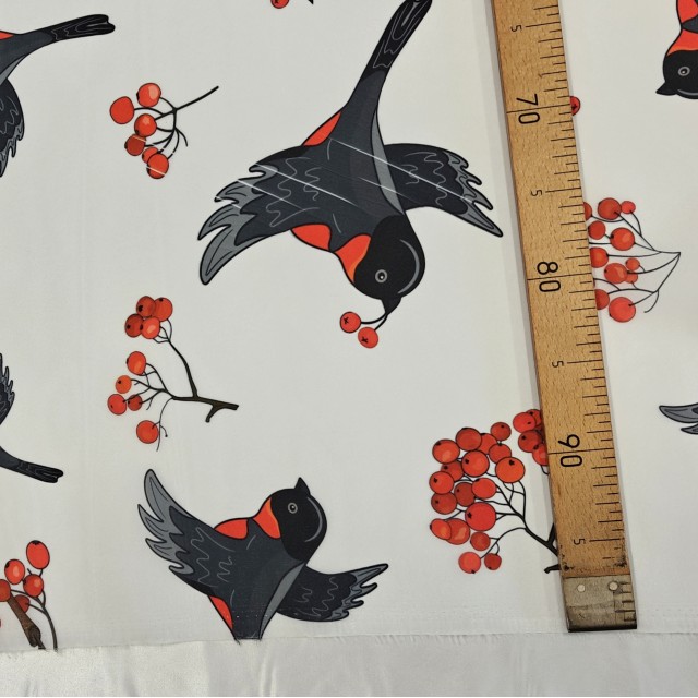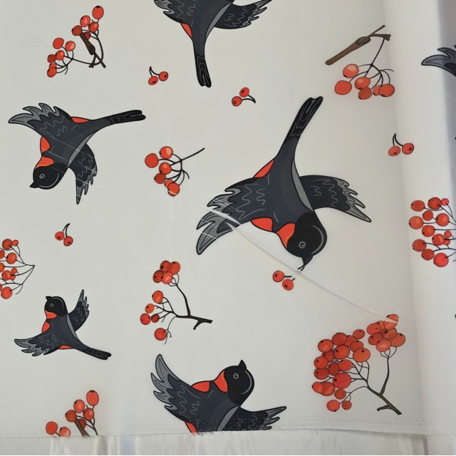 - Органза матовая Виола с принтом Снегири остаток - 5.80 метра