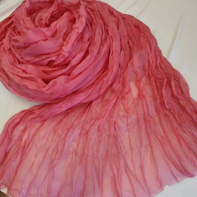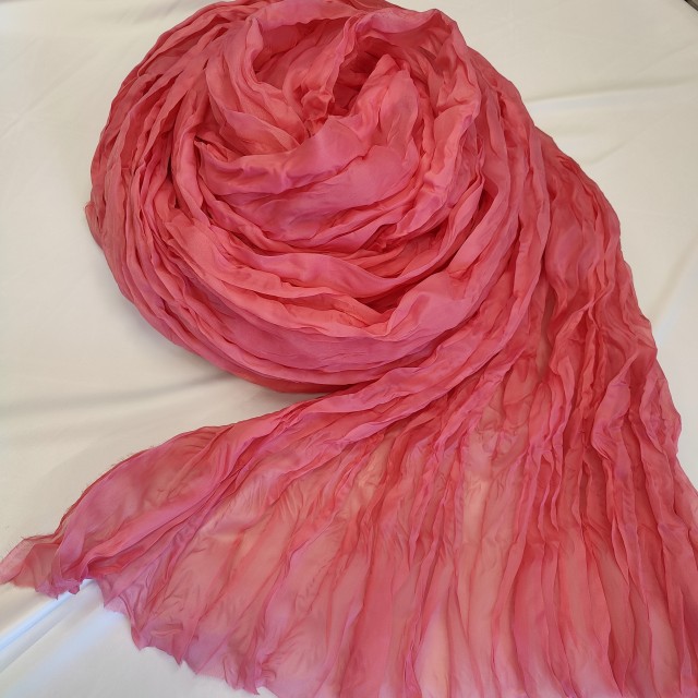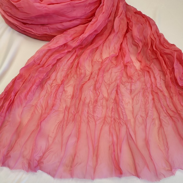 - Органза матовая Виола жатая кораллово розового цвета для создания красивых нарядов