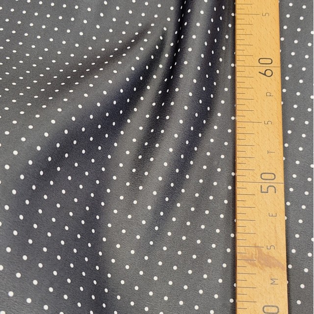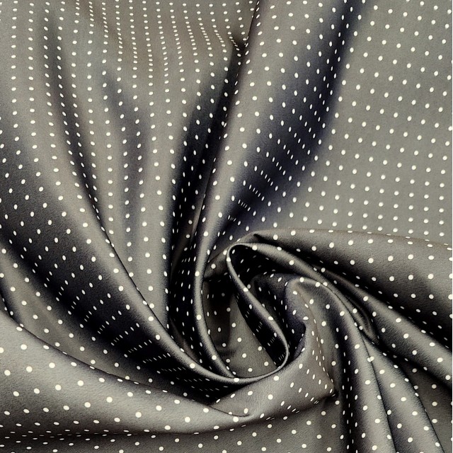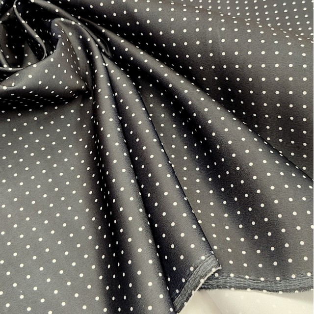 - Атлас матовый Абрахам черный в мелкий белый горох для шитья нарядных платьев и нарядов