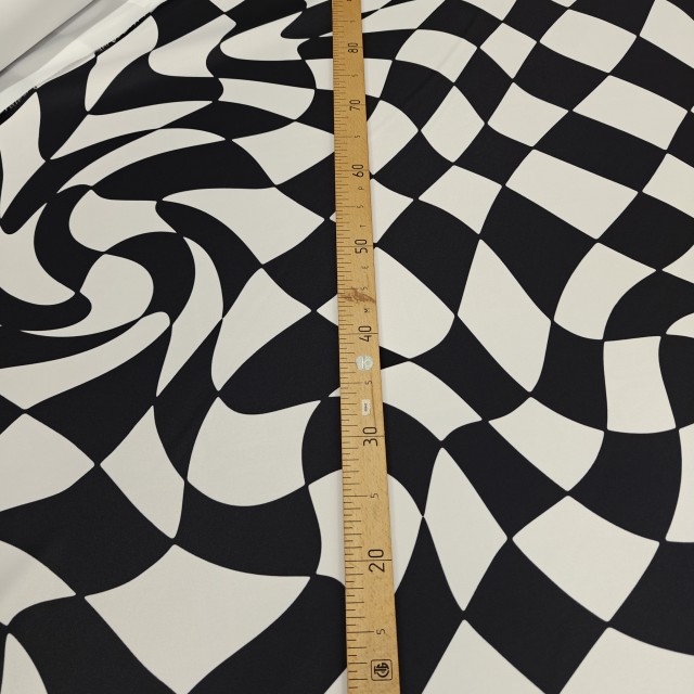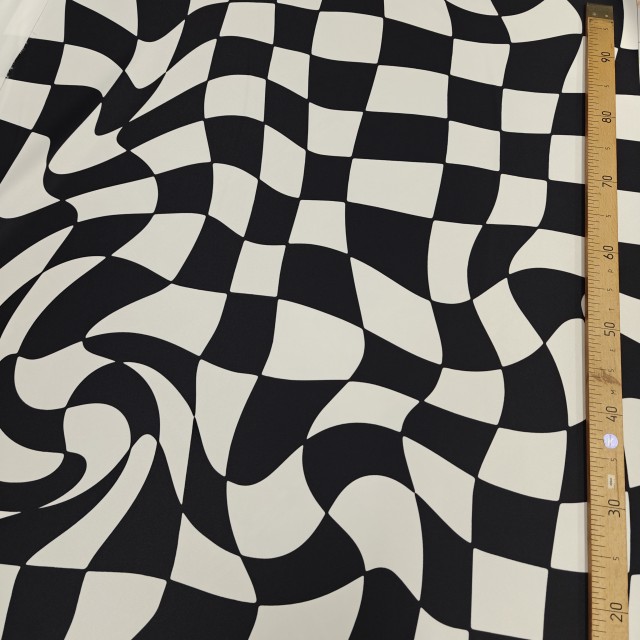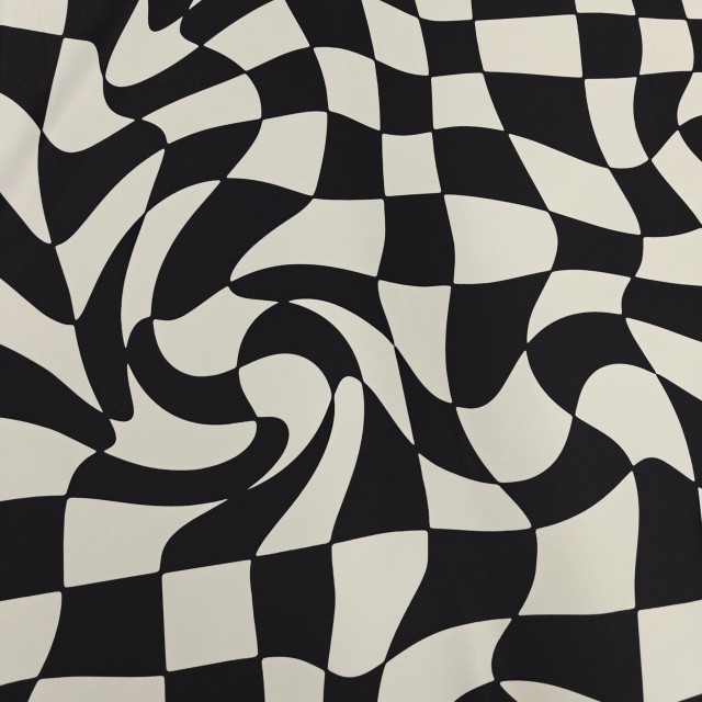 Атлас матовый Абрахам с кривыми черно белые квадратами