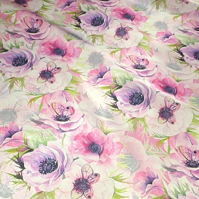 Атлас с блеском Кристалл с бабочками на анемонах
