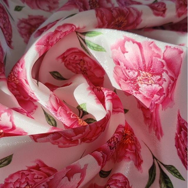 - Атлас с блеском Sunshine цветочный принт Пионы