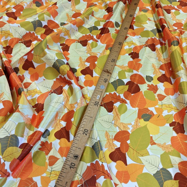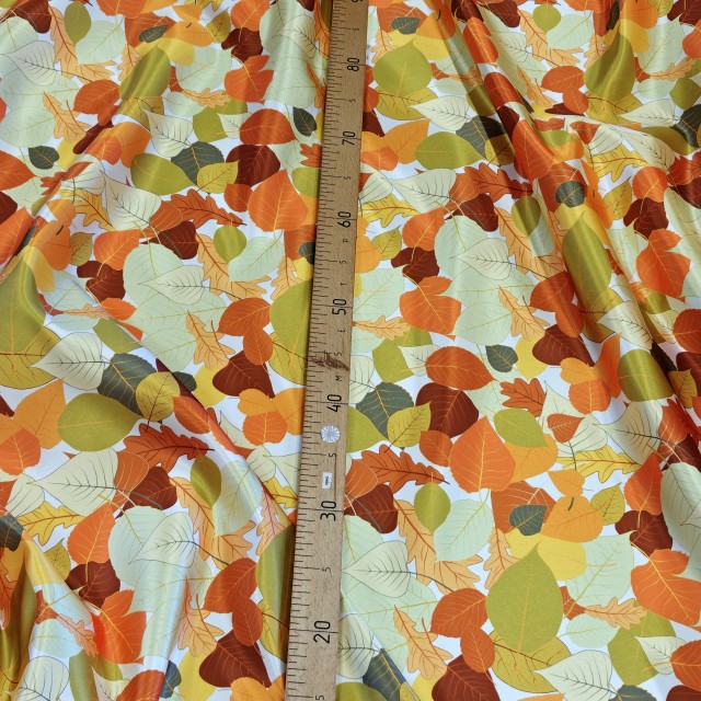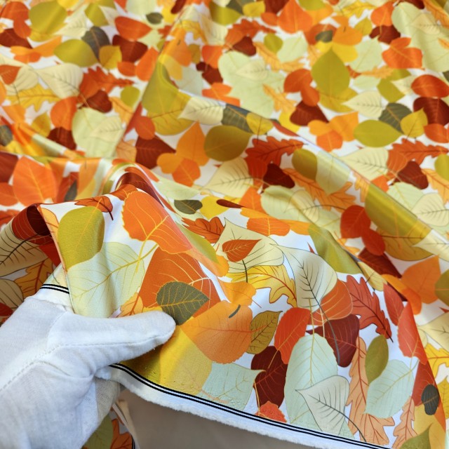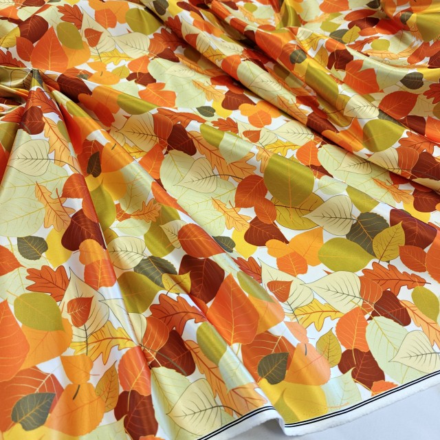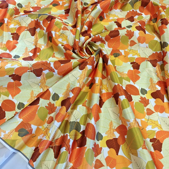 - Атлас Дюпон с красивым осенним принтом для шитья нарядных платьев.