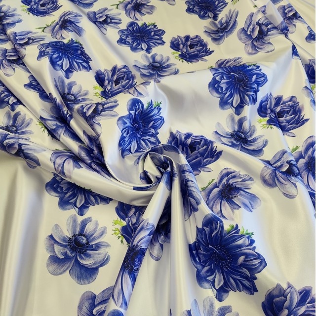 - Атлас Дюпон с синими Анемонами для шитья нарядных платьев