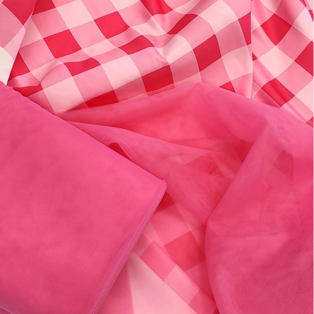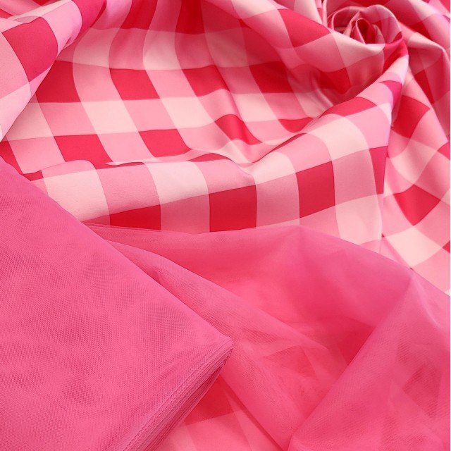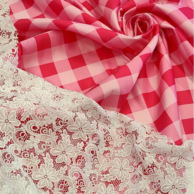 - Атлас матовый Абрахам клетка в стиле Барбикор для шитья нарядных платьев