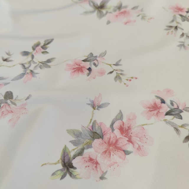 - Атлас стрейч матовый Linda с принтом розочки