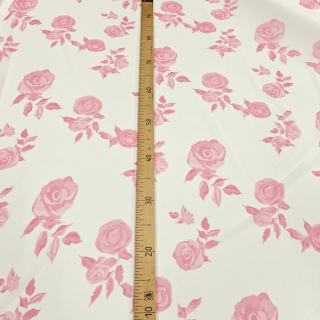 - Плотный стрейч атлас Amerikan saten likra с красивым принтом из роз для шитья нарядных платьев