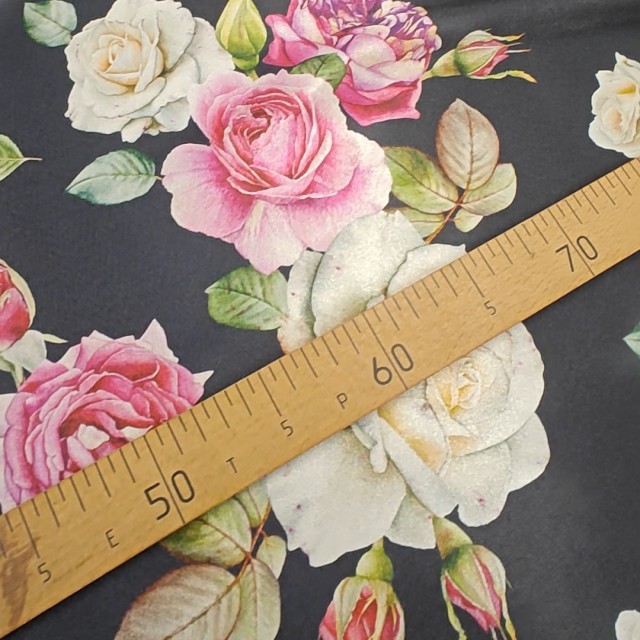 - Плотный стрейч атлас Amerikan saten likra с красивыми Розами для пошива нарядных платьев