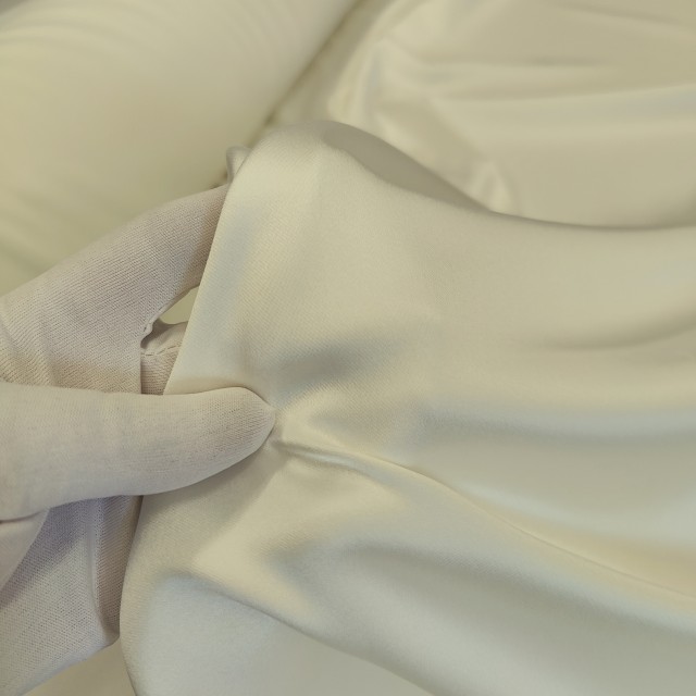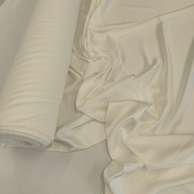 - Плотный и с матовым оттенком стрейч атлас CARMEN красивого молочного цвета