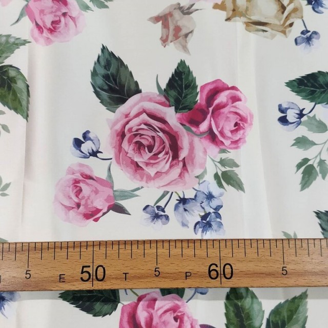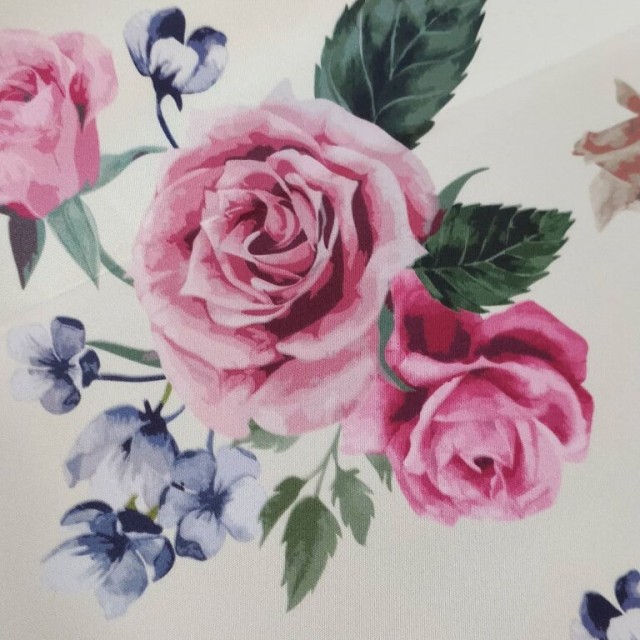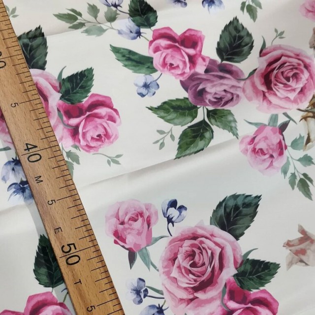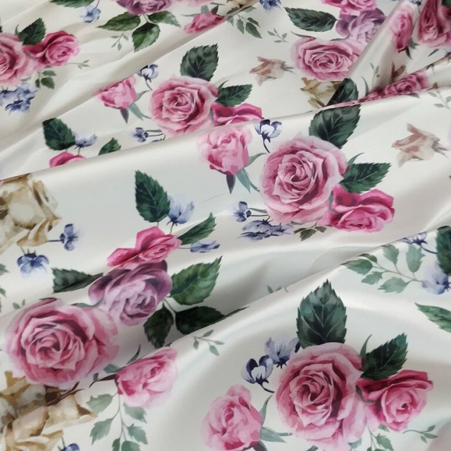 - Атлас Дюпон с цветочным принтом - Розы для пошива нарядных вечерних платьев.