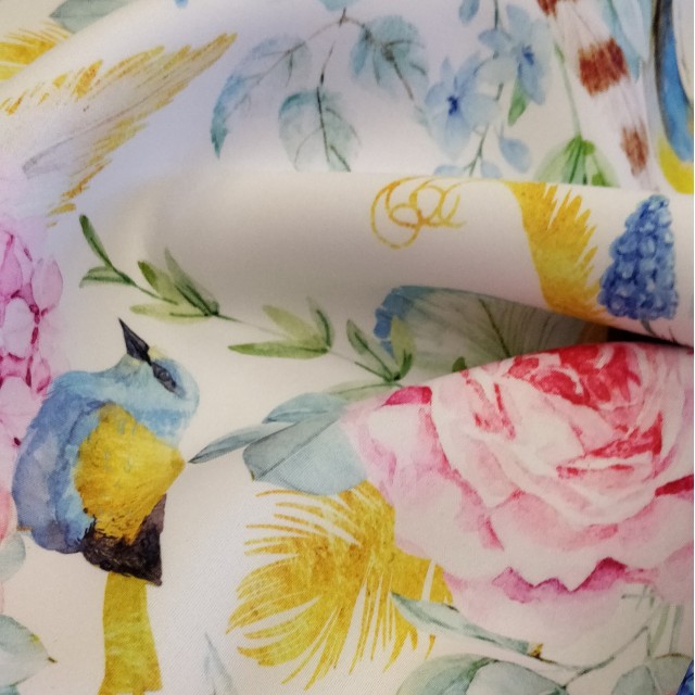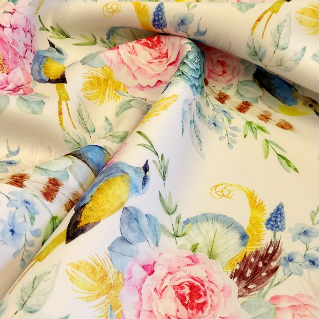 - Неопрен с цветочным принтом Пионы для шитья нарядных платьев