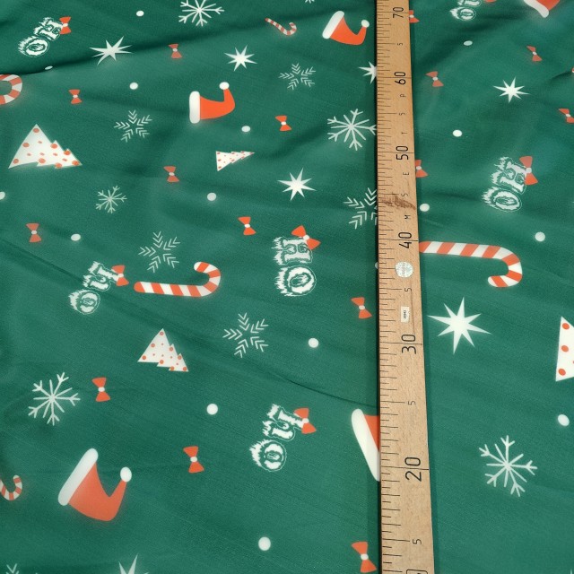 Ткань органза матовая Виола с классическим новогодним вариантом принта будет прекрасным вариантом для пошива нарядного платья.