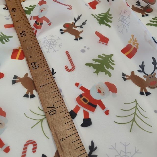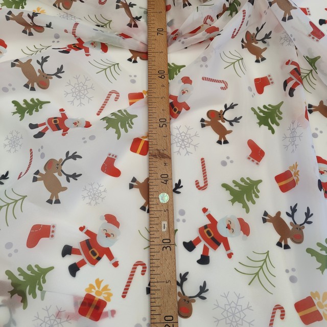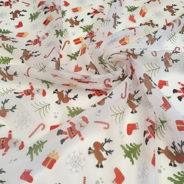 Ткань органза матовая Виола с классическим новогодним вариантом принта будет прекрасным вариантом для пошива нарядного платья.