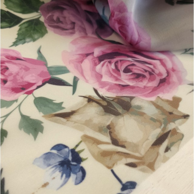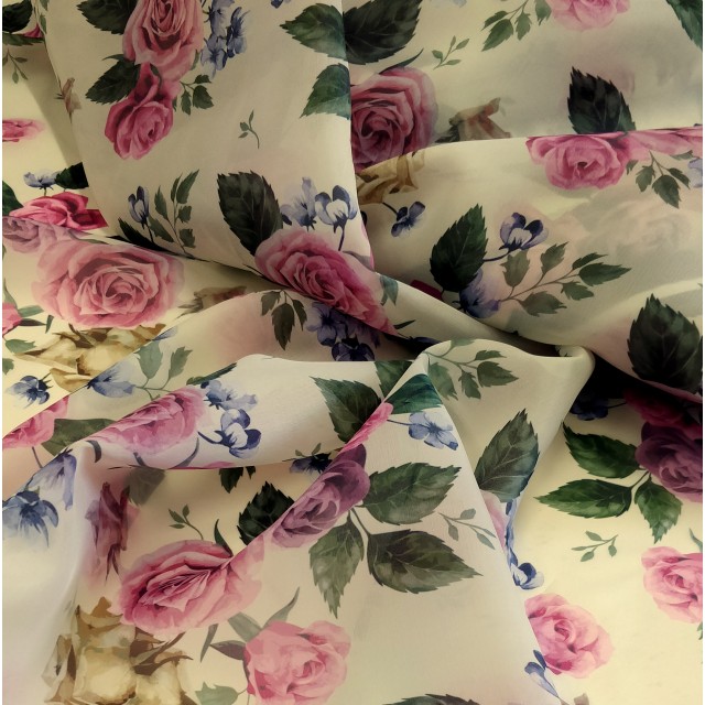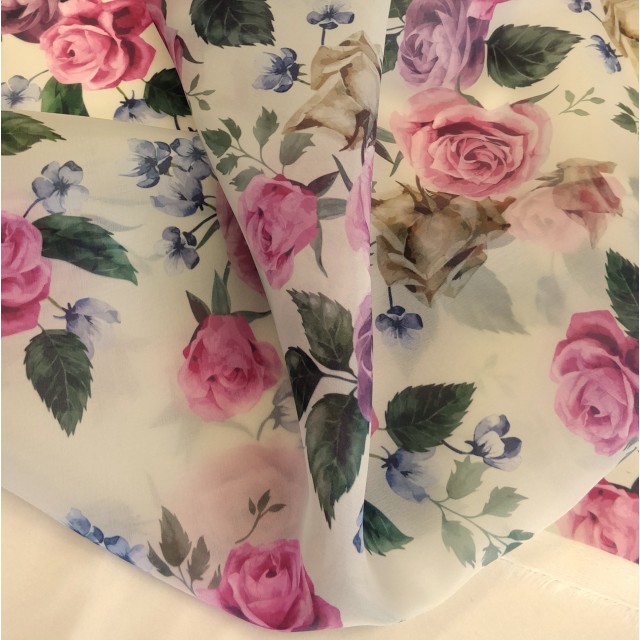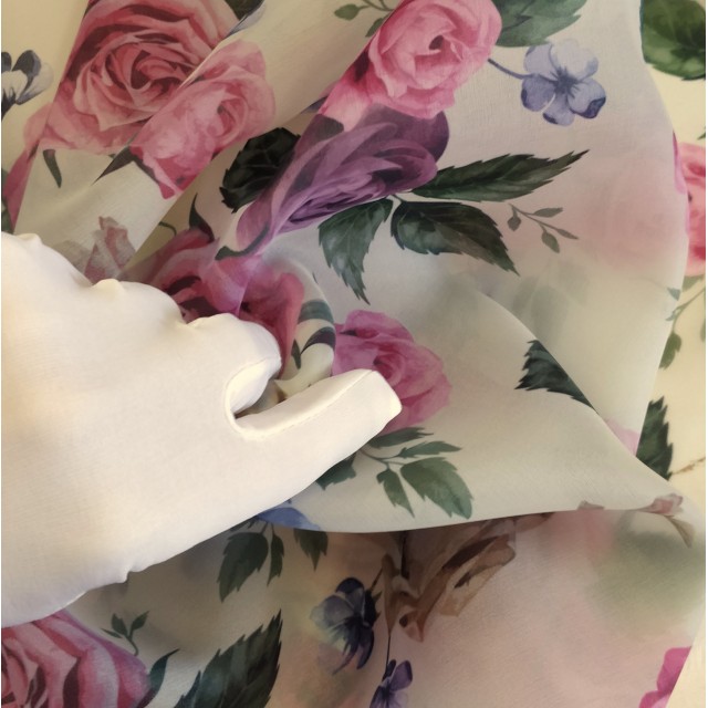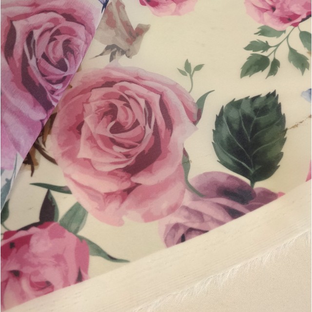 - Органза матовая Виола цветочный принт розы