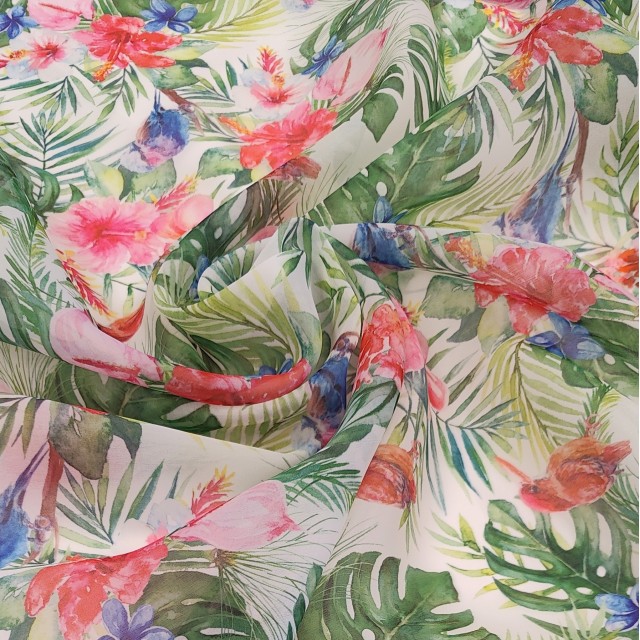 - Органза матовая Виола тропический принт акварелью