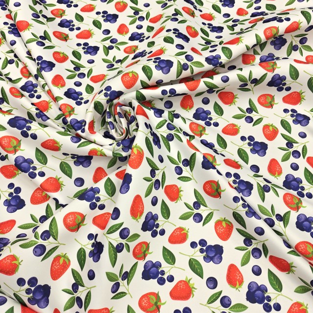 - Армани шелк стрейч с принтом клубника с черникой для пошива