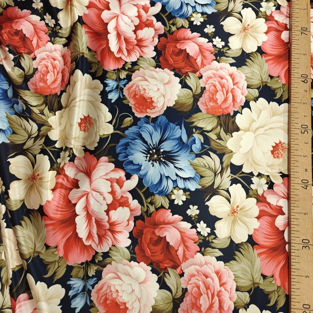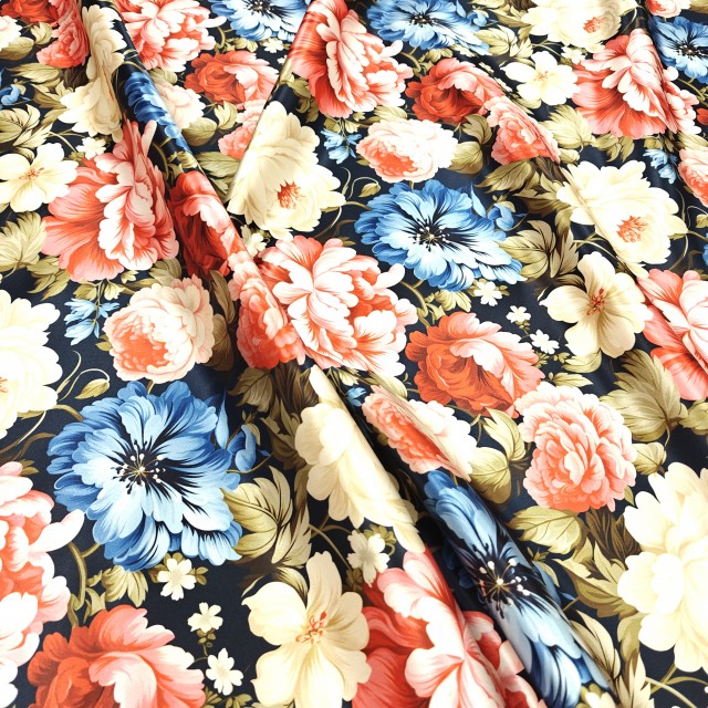 - Атлас Дюпон с винтажным цветочным мотивом