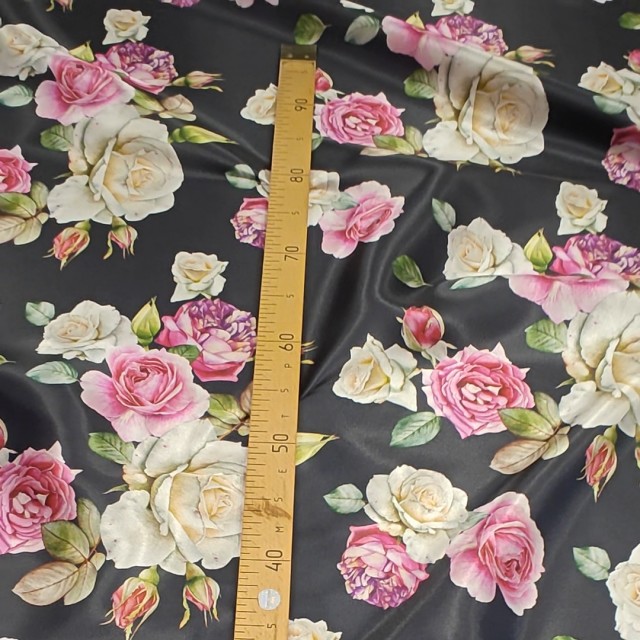 - Атлас с блеском Кристалл с красивыми розами для пошива платьев