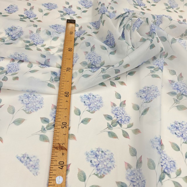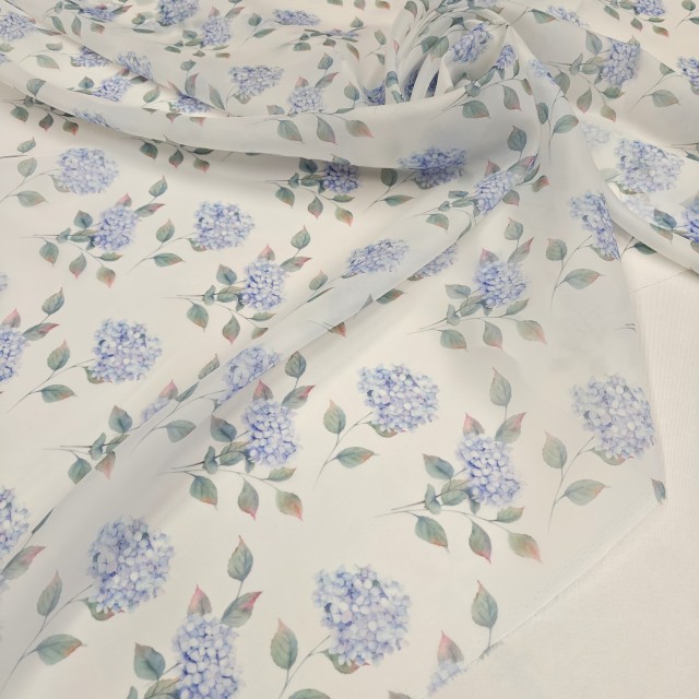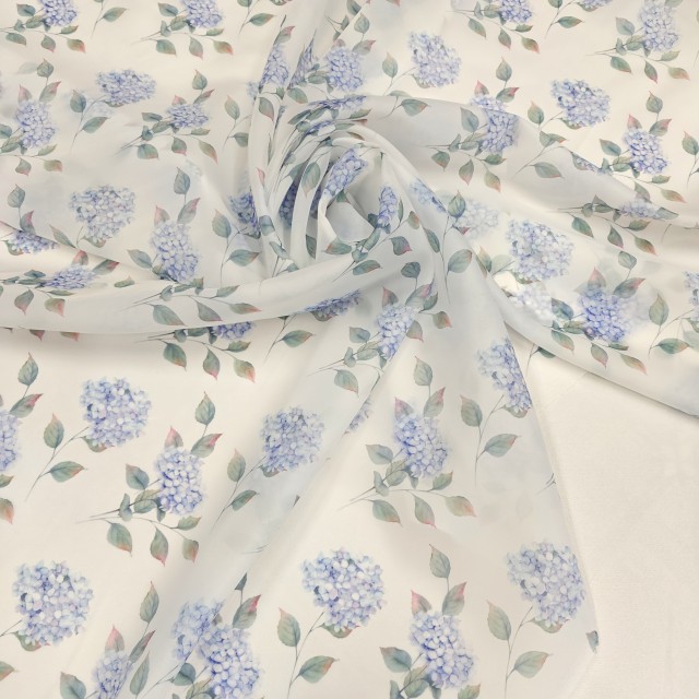 • Органза матовая Виола с акварельной гортензией для пошива нарядных платьев