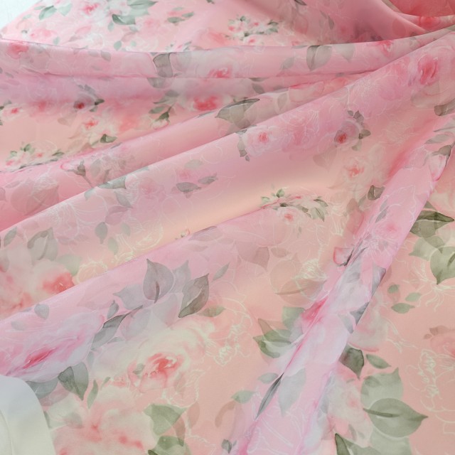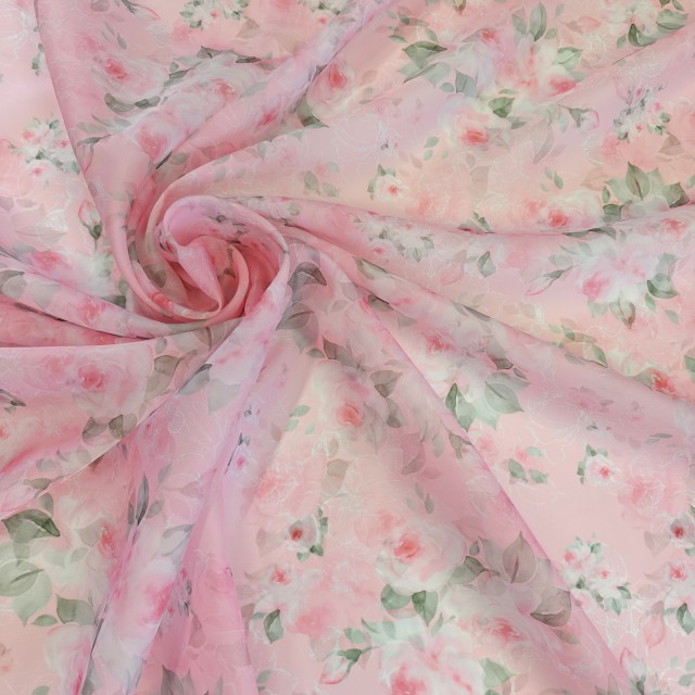 - Органза матовая Виола с милыми розами для пошива нарядных платьев.