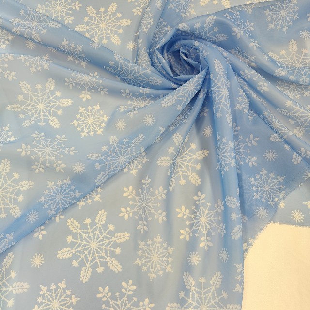- Органза матовая Виола с принтом Снежинки
