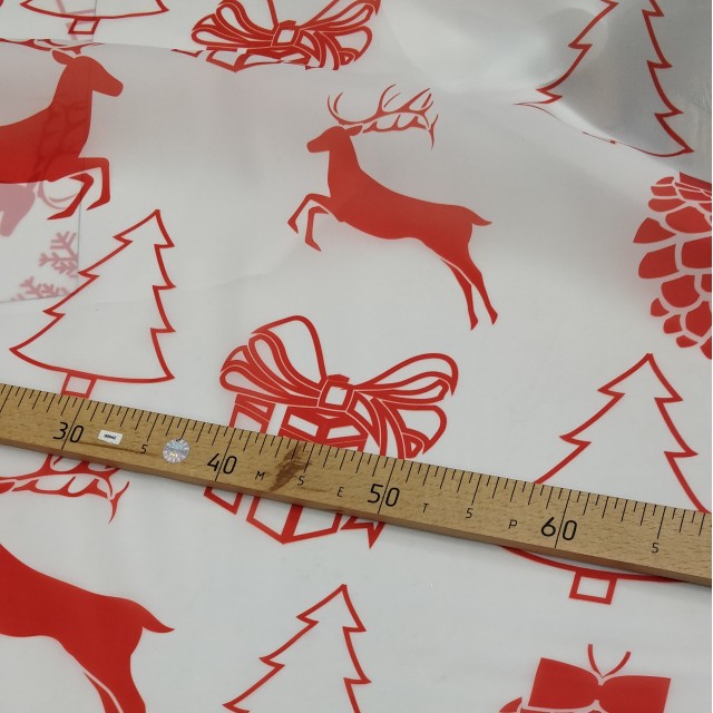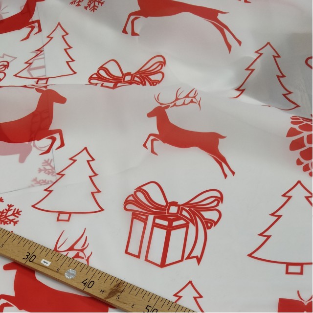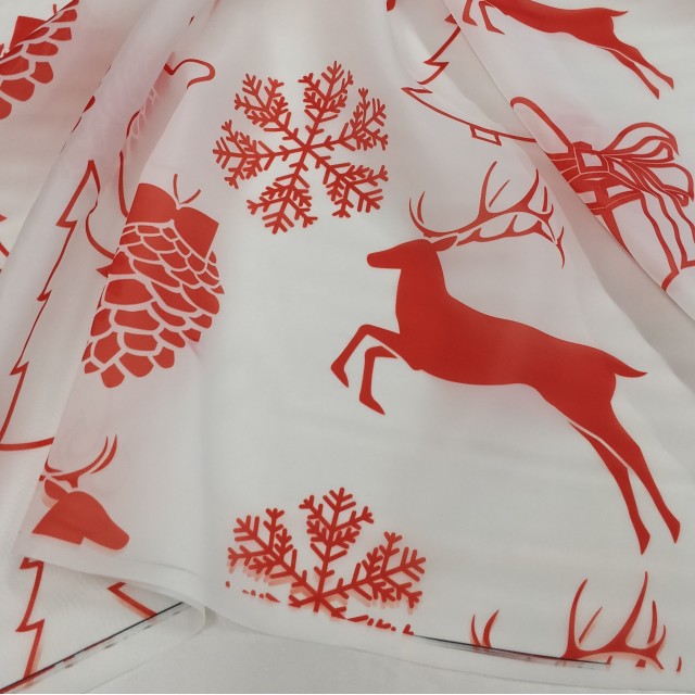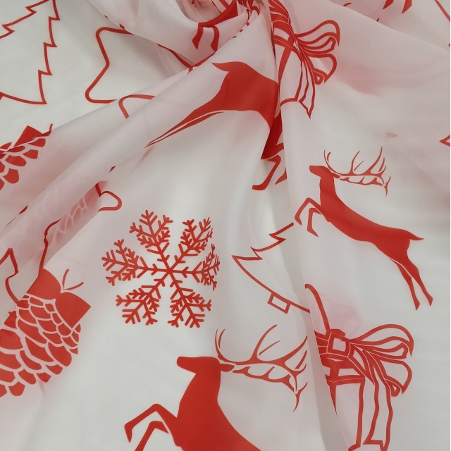 Органза матовая Виола с новогодним принтом для пошива нарядных детских платьев на новый год.