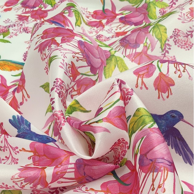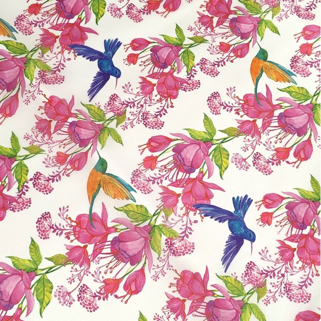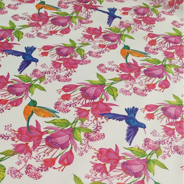 Плотная органза ANGELICA с цветочным принтом и колибри