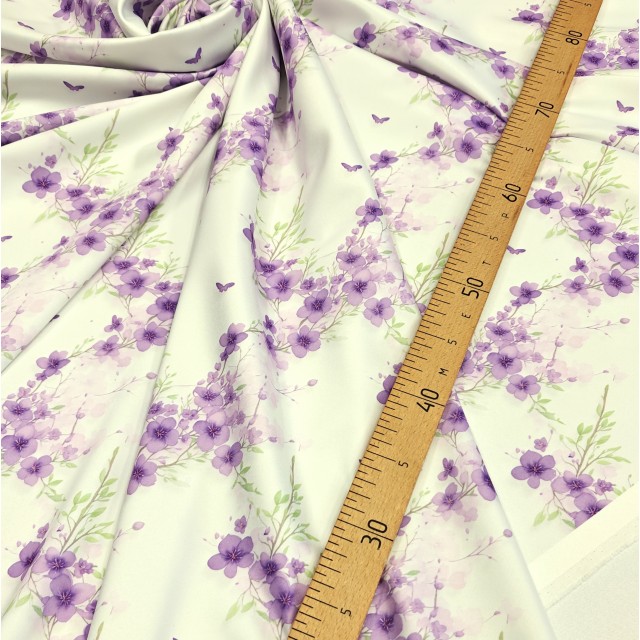 - Плотный стрейч атлас Amerikan saten likra с акварельными фиолетовыми цветами