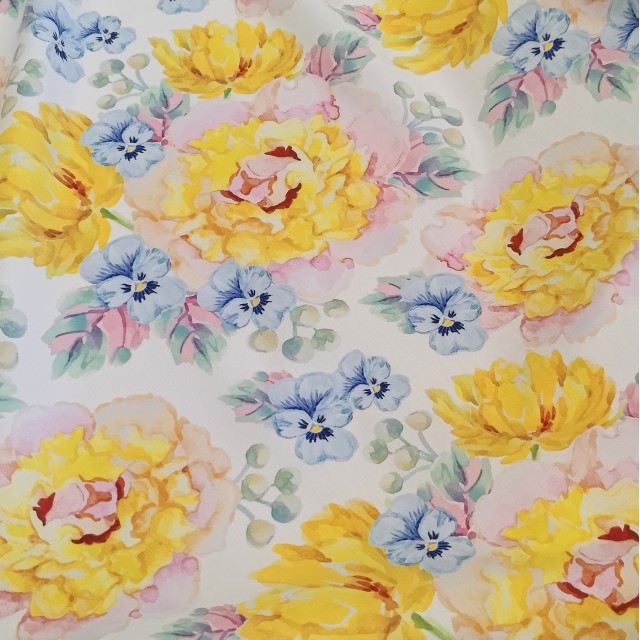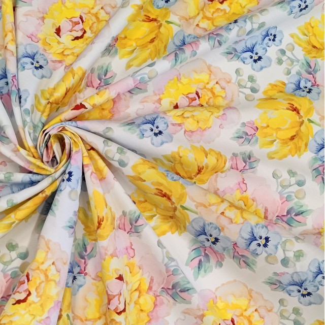 - Плательный поплин с красивым цветочным принтом для шитья нарядных платьев