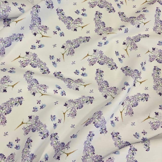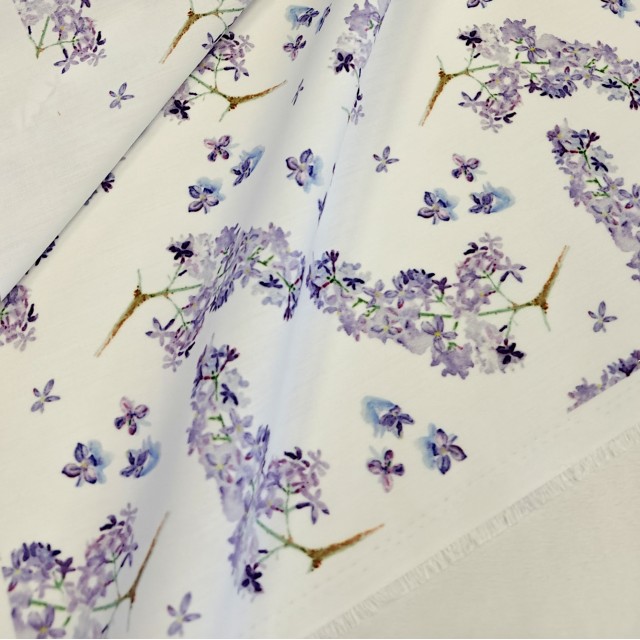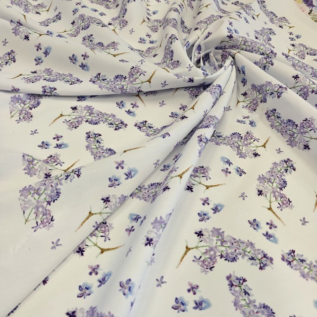 - Плательный поплин ткань для пошива нарядных платьев с красивым рисунком сирени