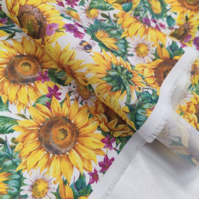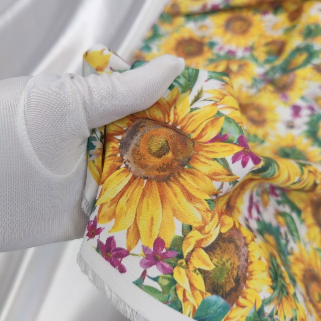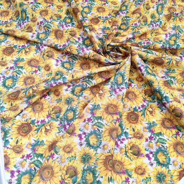 - Плательный поплин для пошива на лето нарядных платьев с подсолнухами