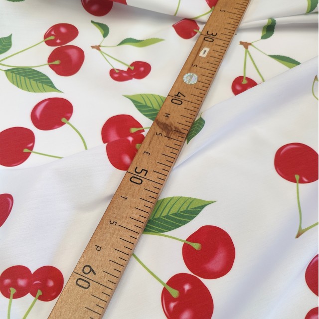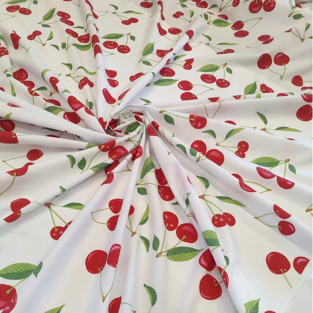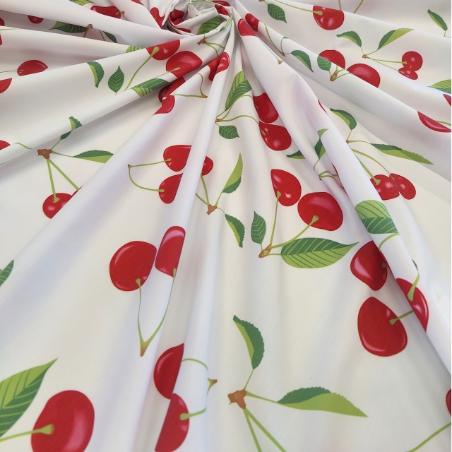 - Поплин плательный - ткань с вишенками для пошива платьев на лето