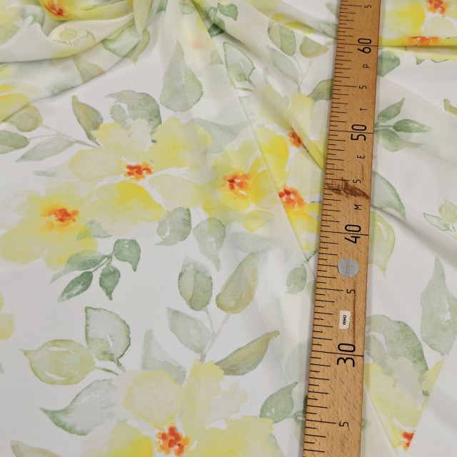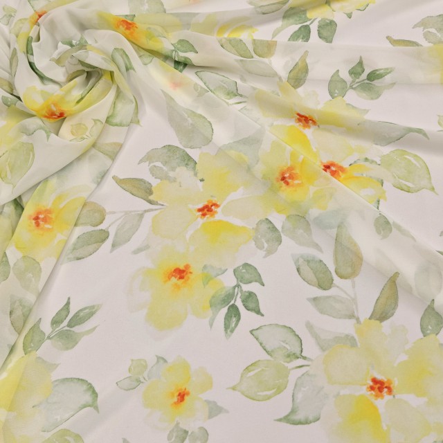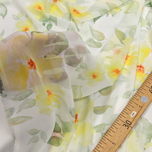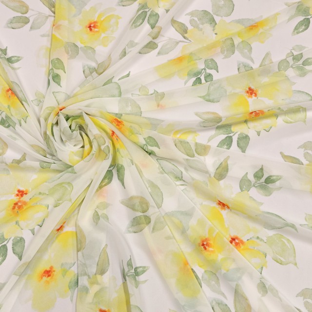 - Шифон Romy с желтыми цветами для шитья роскошных нарядов