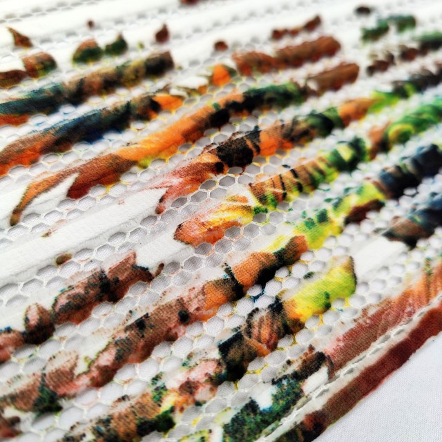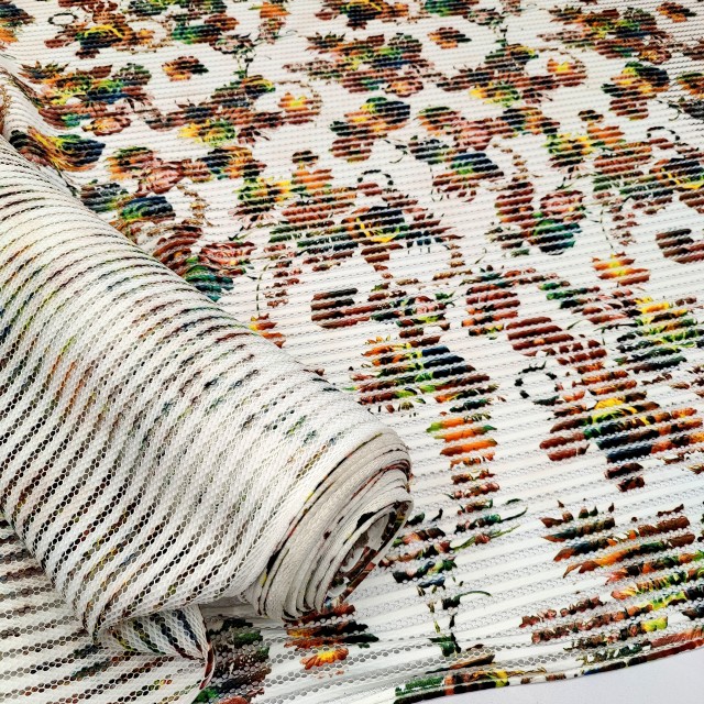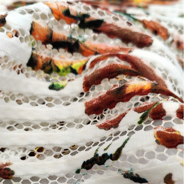 - Ткань плательная сетка с цветочным принтом