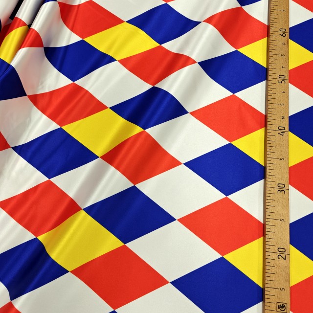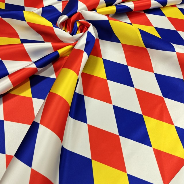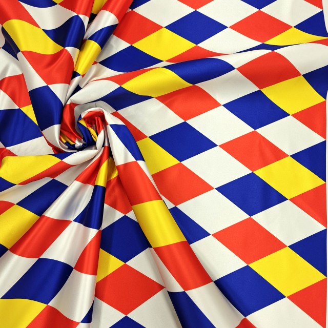 - Атлас Дюпон с цветными ромбами для наряда Арлекин