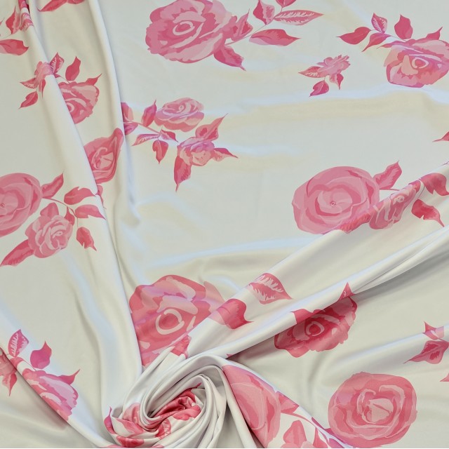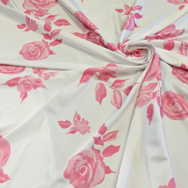• Вискозный атлас стрейч Vella с красивым принтом из роз
