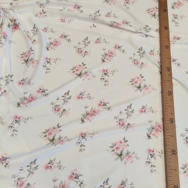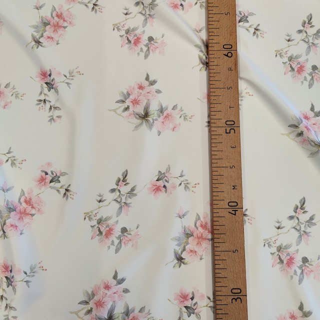 - Вискозный атлас стрейч Vella с принтом розочки для пошива нарядных платьев
