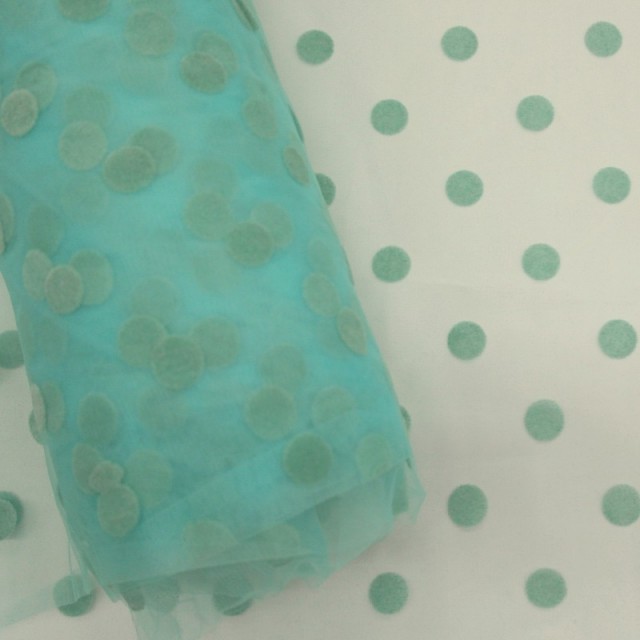 - Мягкий фатин с горошками мятного цвета для пошива красивых нарядов