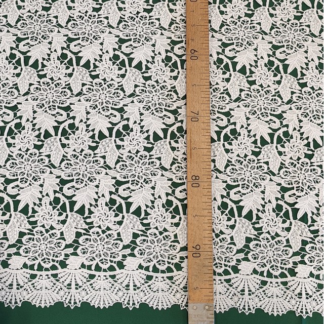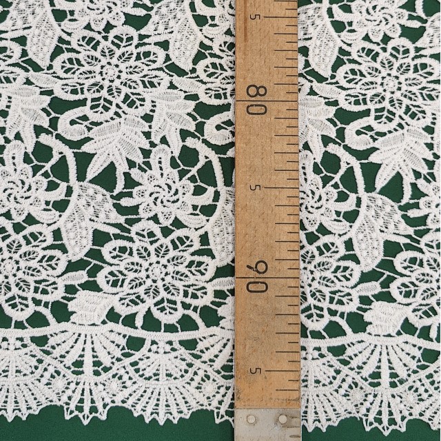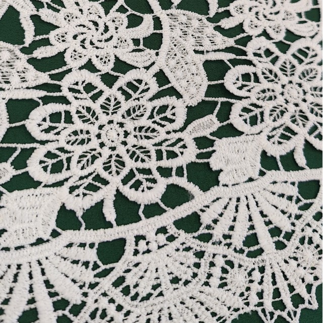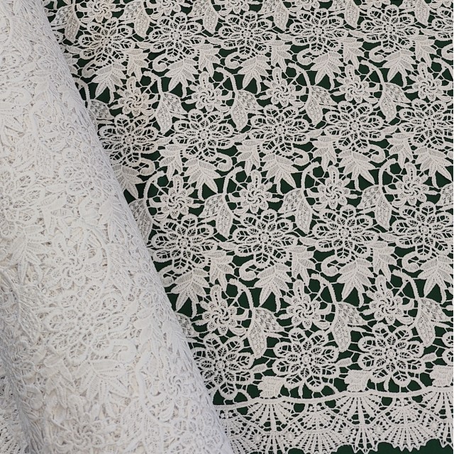 - Гипюр макраме белого цвета для пошива свадебных и нарядных нарядов