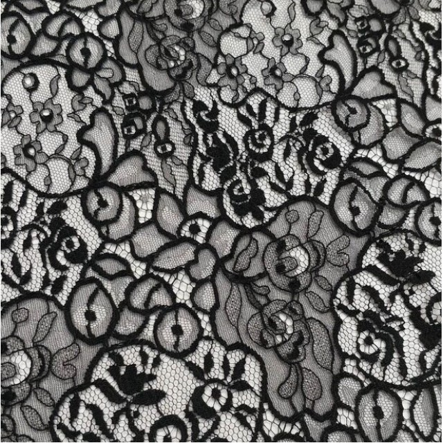 - Кружевной гипюр Шантильи черного цвета для пошива вечерних нарядов